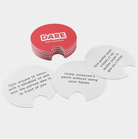 The point of the game is to score in the opponents’ cups and make them answer a truth question or do a dare. The funny part about this is that you can always refuse to do it, but you need to take a shot instead!